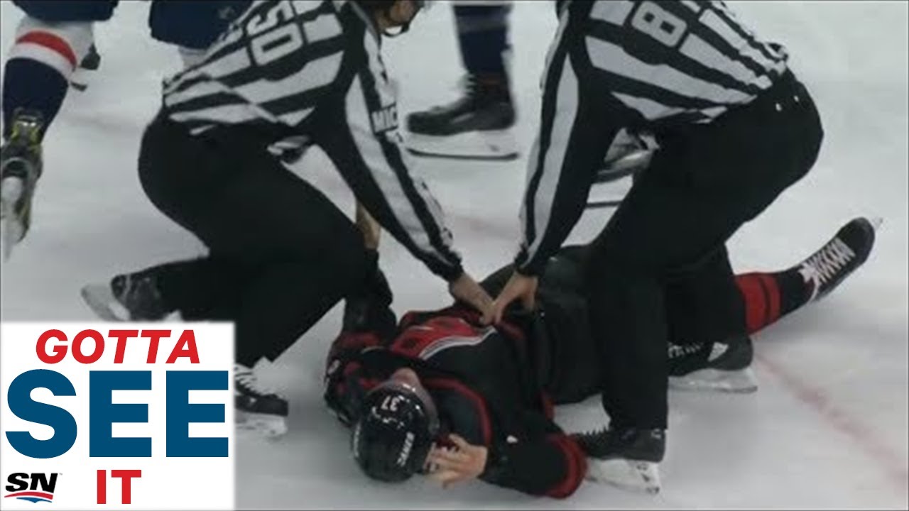Det unge stortalent, Ovechkins 19-årige landsmand Andrei Svechnikov, fik prikket til bjørnen, og det fortryder han nok nu - hvis han da overhovedet kan huske noget.